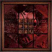 Loop verder door een deuropening naar rechts. Je komt in een ruimte, waar middenin een comfortabele ronde zitplek is gemaakt. Langs de muur hangen schilderijen. Bekijk ze. Bij degene die de titel "Perfect Love" heeft, zie je onder de vrouw een hartenaas en schoppenzes geschilderd. Op het schilderij "For Better or Worse" zie je een zwaard, met de Romeinse cijfers III (3) en V (5).