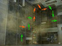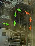 Sta op vanachter de computer, verlaat de Wapenkamer en ga door de deur bovenin, naar de gang van het Archief. Victoria wil hier niet verder lopen, omdat er laserstraalbeveiliging is.