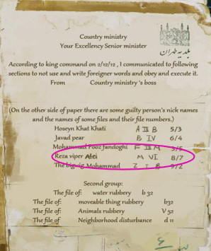 Op het officiële document zie je waar je het dossier van 'Reza the viper' kunt vinden, namelijk in rijd VI (6), 7/8 ste plank. Ook staat zijn echte naam erbij genoteerd: Reza Afei.