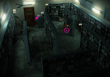 De bruine deur aan het einde van de volgende gang is het archief (archives room).