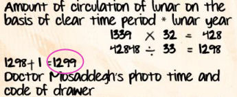 Bekijk het portret van dr. Mosadegh aan de wand. Er staat een datum op: Jumadal 14, 1339.