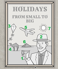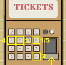 Ga de trein uit en praat met Laura. Ze zegt dat haar foto's gestolen zijn.Bekijk het zakje dat op de grond ligt en haal er een pinda (peanut) uit. Rechts op de grond ligt een papiertje. Klik op de bovenkant van het papier om het te vouwen tot een vliegtuigje (paper plane). Ga naar rechts. Zaag het blikje op de grond in twee keer open en pak het worstje (sausage) eruit. Van de 4 leerlingen daar krijg je geen informatie. Ga 2x naar rechts. Ook daar staan leerlingen. Praat met de jongen met het boekje. Hij wil dat je hem helpt. Bekijk het boekje. Je ziet negen klasgenoten van hem. Onder Laura staat de naam Alex. Links zie je beweringen waaruit je moet concluderen wie de personen zijn. Zet de foto van Laura boven haar naam. Het is de bedoeling dat je de goede namen bij de foto's hebt staan. Zie dat de persoon die in het boek staat bij de foute naam Johnny, slechts één oorbel draagt. Van Alex is iets gestolen. Dat zal die oorbel zijn. Zet de foto van de leerling met de oorbel boven de naam Alex. Sluit het boek en zoom uit. Leg het worstje op de linker leerling van het groepje van drie. Klik op deze leerling en ze geeft over. Open het boek. Deze leerling moet volgens de aanwijzingen Tess heten. Zet de foto boven de naam Tess. Sluit het boek en zoom uit. ![]() Bekijk de jaszakken van de leerling met de oorbel. Op een papiertje staat de roddel over Sam die verliefd zou zijn op Johnny. Bekijk de hoofdjes en zet de roodharige Sam op zijn plek. Johnny staat al op de goede plek, rechts van Sam. Ga 2x naar links om de andere leerlingen te zien. Leg het vliegtuigje op de rechter leerling en je ziet een sterke reactie. Ga 2x naar rechts, open het boek en zie de aanwijzing dat Bobby bang is voor vliegtuigen. Zet Bobby's foto onderaan in het midden. Ga 2x naar links en kijk of er iemand allergisch is voor pinda's. Dat moet volgens de aanwijzingen Jimmy zijn. Het gezicht van de 2e leerling van links zwelt op, als je hem een pinda geeft. Kijk in de jaszakjes van de leerling rechts van hem. Er zit een oorbel in die van Alex is. Ga 2x naar rechts en zet Jimmy's foto op de goede plek. Je hebt de puzzel opgelost. Praat met de jongen met het boek. Hij wil een pinda. Ga dus 2 plekken naar links, pak de pinda en ga terug om de pinda aan de jongen te geven. Daarna wil hij een vliegtuigje. Ga dus 2 plekken naar links om het vliegtuigje te pakken. Ga 2x rechts het vliegtuigje aan hem geven. Hij wil nu ook een worstje. Pak het af van de persoon rechts van hem. Als je het worstje hebt gegeven, praat je met de jongen en geeft hij een worm terug. Boven de leerlingen zie je een nest met een duif erop. Voer de worm aan de duif en klik op hem. Er ligt een ei in het nest. Pak het en het valt op het hoofd van een leerling. Blijf op deze jongen klikken tot een leerling hem zegt zijn mond te houden. De jongen liet zijn tas vallen. ![]() Bekijk de tas. Schuif de spullen opzij om ze te bekijken. Je ziet een boekje dat alleen met een code open kan. Verder zie je een liniaal, een lolly, een sigaar en een puntenslijper. Meet de lolly. Die is 6 cm. De sigaar is 7 cm en de puntenslijper 3 cm. Onder het slot van het boekje staat een hint. Je ziet een lolly getekend, een puntenslijper en een sigaar. Gebruik code 6 (lolly), 3 (puntenslijper) en 7 (sigaar). Zoom uit en open de sluiting van het boekje. Je ziet een paar foto's (photos) en een knullige tekening van een papegaai en Laura. Ga naar rechts. Geef Laura haar foto's en praat met haar. Ze zegt dat de trein om 14.45 uur aankomt. Nu moet je een kaartje halen. Zie de automaat. Er staan pijltjes op die je moet volgen. Als je bijvoorbeeld op een vakje staat met 3 pijlen naar beneden, ga je 3 plekken omlaag. Sta je op een vakje met een pijl naar links en een naar onder, dan kun je kiezen of je een vakje naar links gaat of een naar onder. Je moet alle vakjes aanklikken in de juiste volgorde. ![]() Oplossing: - Begin met het 2e vakje op de bovenste rij. - Volg de pijl naar het 2e vakje op de onderste rij. - Ga daar links en volg de pijl tot je op het rechter vakje van de bovenste rij komt. - Ga naar links tot je op het 3e vakje bent van de 2e rij. - Ga daar rechts en volg de pijlen. Pak het treinkaartje (metro ticket) en ga 2x naar links. Zet de klok op 2.45, stap in de trein en laat je kaartje zien. Knip het kaartje, laat de trein vertrekken en stap uit op Bird Bridge Station. 4: Bird Bridge Station