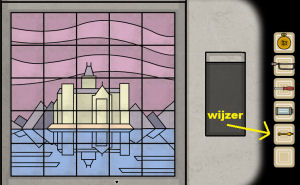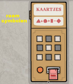 Ga de trein uit.Rose en de jonge Laura staan daar. Praat met hen. Laura wil snoep. Zoom uit. Op de muur links zie je een metalen plaatje. Bekijk het en schraap er met de schraper de oude kauwgum (old gum)af. Geef de kauwgum aan Laura. Klik op Laura en zij blaast de kauwgum op. Klik op de kauwgumbel en pak de zachte kauwgom (chewed gum) van Laura's gezicht. ![]() Ga naar rechts. Bekijk de vakantieposter. Klik van klein naar groot de voorwerpen op de poster aan: Glas - hoed - vlieger - kameel - vliegtuig - piramide - zon. De linker hoek krult om. Pak de sleutel (key). Ga 2x naar rechts. Onder de kaartjesautomaat ligt een poster. Pak hem op. Bekijk het beeld van Mr. Owl, waar nog niets mee te doen valt. De twee ramen zijn een aanwijzing voor later te maken puzzels. Praat met de man op het bankje en klik op Laura, die meteen verdwijnt. Bekijk het koffertje. Je zult een code moeten vinden om het te openen. Zoom uit en ga 2x naar rechts. ![]() Stop de poster in de linker lijst en rol hem open. Hij krult weer om. Plak de kauwgum in de lijst en rol de poster uit, die nu goed te zien is. Klik op de glimlach, dan op de ogen, de armband, het haar, de ogen en de glimlach. Klik dan op het pakje en er komt een mes uit dat het model op de poster neer steekt. Je ziet nu een telefoonnummer (53114) dat in noodgevallen gebeld kan worden. Klik op Laura die zich boven de kiosk verstopt. Ga naar links. Gebruik de sleutel om de telefooncel te openen en draai eraan. Je kunt de telefoon niet gebruiken zonder muntje. Ga naar links. Zie dat Laura zich achter het beeld van Mr.Owl heeft verstopt. Klik haar aan en ga 2x naar rechts. Pak het ruitje (glass panel) dat Laura in haar hand heeft en ga naar links om de bijbehorende puzzel op te lossen: Zet het ruitje in het raam boven de telefooncel. Het is de bedoeling dat je de ruitjes zo draait dat er een afbeelding te zien is van bomen in een roze veld met blauwe lucht. De ruitjes zijn te draaien van links naar rechts en van boven naar onder. ![]() Tip: Begin met het ruitje links op de 3e rij. Laat de lijn tussen het blauwe en roze gedeelte van linksboven naar rechtsonder lopen. Draai daarna het ruitje rechts hiervan zo, dat de lijn doorloopt. Ga verder met de 3e rij en maak een golvende lijn. Leg dan de onderste rij goed en leg dan het deel met lucht en takken goed. Als je de tekening goed hebt gelegd, gaat er een vakje open waar een hendel (crank) te pakken is. Zoom uit en ga naar rechts. Zet de hendel in het gat bij de kiosk. Draai eraan en pak de krant (newspaper). ![]() Ga 2x naar rechts en geef de krant aan de man op het bankje. Als hij hem gaat lezen, zie je dat de krantenkoppen niet kloppen bij de foto's. Je kunt de koppen bij andere foto's zetten. Van links naar rechts zet je bovenaan: Verjaardags bloedbad (Birthday massacre), Fabriek geopend (Factory opened), Nieuwe stationsopening (New station opening) en Koffer gevonden (suitcase found). Onderaan staat: Hotel renovatie (Hotel renovation), tijdloze hond (ageless dog), vakantie seizoen (Holiday season) en schilderij verdwenen (painting lost). Haal een muntje (coin) uit het borstzakje en zoom uit. Ga naar rechts en doe de munt in de telefoon. Draai dan 53114 en klik 4x op de hoorn van de telefoon. Je krijgt een aanwijzing. Je moet in de ogen van de vogel kijken. Ga naar links en bekijk de ogen van Mr. Owl. Die worden wit en het beeld trilt. Zoom uit en bekijk de onderkant van het beeld. Zet de ijzeren staaf in het vak onder het naambordje. Sleep het vak open en je leest het getal 8827. Open het koffertje van de lezende man en gebruik deze code om het te openen. Druk op de knop naast dit getal en zoom uit. Klik op het koffertje en er komt een camera uit. Ga 2x naar links en geef de camera aan Laura. Klik 3x op de camera, zoom uit en klik op Laura. Ze gilt en na uitzoomen huilt ze om haar moeder. Ga naar links. Rose staat daar bij de man met de hertenkop. Klik op Rose en de hertenman zegt dat hij haar meeneemt en het meisje alleen zal zijn. Zoom uit en ga rechts naar Laura toe en dan naar rechts. Rose en de hertenman gaan weg met de trein. Pak Roses tasje, open het en haal het gouden horloge (golden time piece) en de inbusschroevendraaier/moersleutel (nut driver) eruit. Lees het briefje. Ga naar rechts en klik op Laura. Pak het filmrolletje (roll of film) en ga naar rechts. ![]() Haal met de schroevendraaier 4 bouten uit het plaatje onder het linker raam. Achter het plaatje zit een ruitje (glass panel). Zet dat ruitje in het raam links. Maak de afbeelding die erop hoort te staan. Tip: Begin bovenaan met het linker ruitje. Maak op de eerste rij een golf. Links gaat die iets omlaag en het tweede ruitje gaat iets omhoog. Ga verder op de 2e rij van rechts naar links en sluit dan het gebouw aan. Als je de tekening goed hebt neergelegd, gaat er een luikje open met een klokwijzer (clock hand) erin. Pak de wijzer en ga naar rechts. Leg het fotorolletje in het bakje in de foto-kiosk. Klik op het bordje en je hoort dat de foto's over 20 minuten klaar zijn. Ga naar rechts en zet de wijzer op de klok. Zet de klok op 20 minuten over 12 en ga naar links. Er zit nu een envelop in het bakje in de kiosk. Bekijk de envelop met foto's. Zie dat de trein om 5 over 4 zal vertrekken. Je weet nu de vertrektijd, maar hebt nog geen treinkaartje. Ga 2x naar rechts en bekijk de kaartautomaat. Je ziet 9 vakjes en daarboven staan symbolen, een driehoek, cirkel, rechthoek en ruit. De ramen boven de kaartjesautomaat zijn aanwijzingen. Bij het raam met de driehoek staan 3 witte ruitjes in het midden. Bij het raam met de cirkel zie je linksonder en rechtsboven een wit ruitje. Ga 2 plaatsen rechts kijken hoe het raam met de rechthoek eruit ziet. Daar staat een wit ruitje linksboven en een rechtsonder. Het raam met de ruit heeft in de middelste rij een wit ruitje links en eentje rechts. Ga 2x terug naar links. ![]() Oplossing: - Maak de ruitjes wit zoals je zag bij het raam met de driehoek: de middenrij is dan wit. - Maak het onderste ruitje links 
