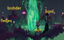Ga naast de kist om de inventaris te sluiten en klik dan met je Froderick-cursor, die een rode rand krijgt, op de plantenbak.