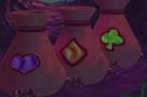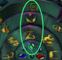 Je ziet nu een groot versierd kruis met aan elke arm een optie: hand=openen/pakken, oog=bekijken, mond=praten, vleermuis=vliegen/andere acties.