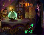 Ga terug naar de sneeuwpop voor de stal. Haal het flesje inkt uit je inventaris en giet het leeg over de sneeuwpop. Je hebt nu een blauwomrand zwart sneeuwpophoofd in je inventaris.